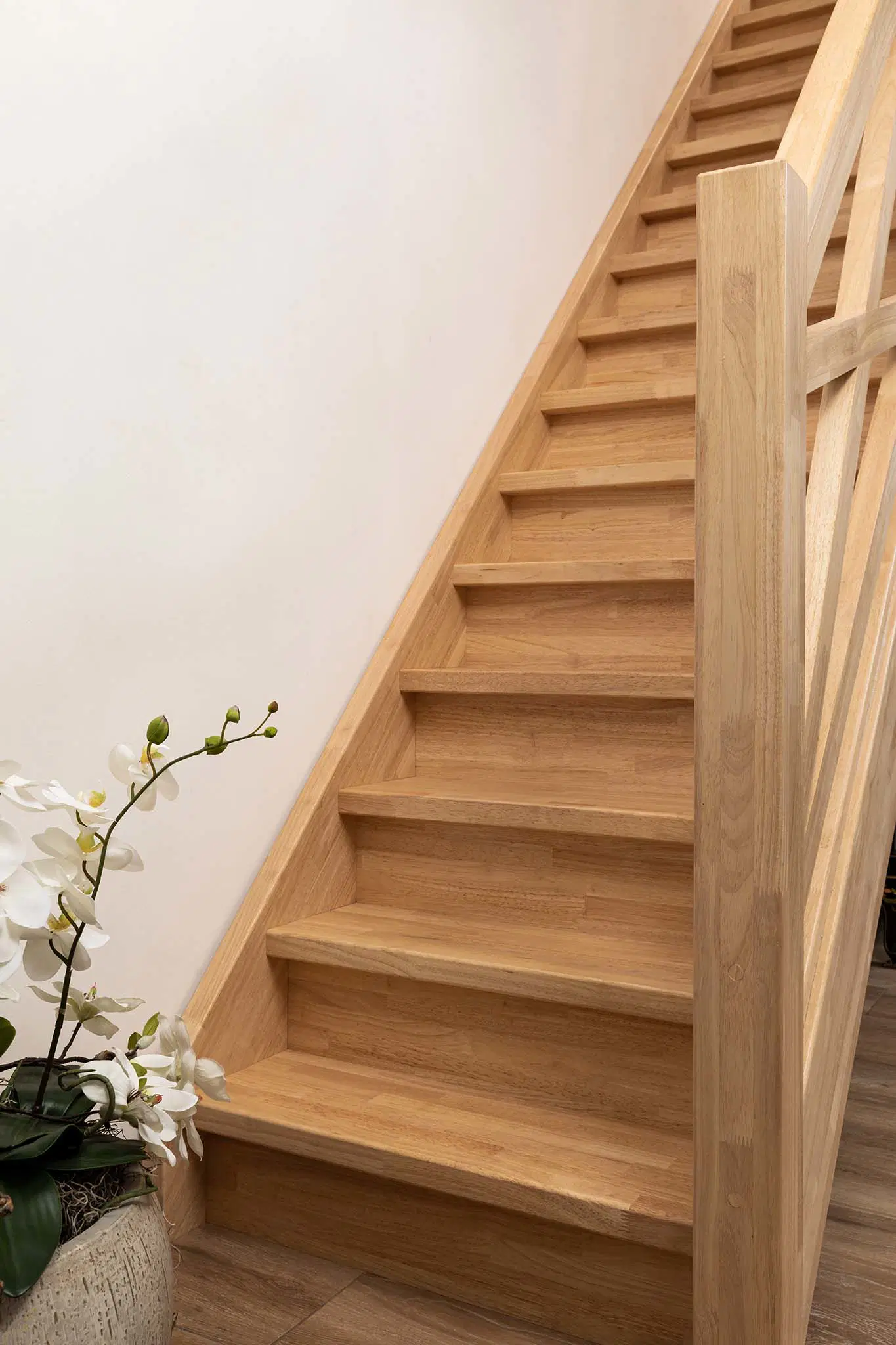 Voor onze trappen van hoog niveau gebruiken we onder andere duurzaam eiken- en, beukenhout, rubberwood en vurenhout.